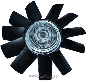 Крыльчатка вентилятора с вискомуфтой в сборе (пластмассовая правое вращение (против часовой стрелки) 11 лопастей) (крыльчатка [560.1308011] с муфтой [2203607/N (560.1308020ДС)])