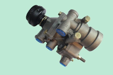 Для наполнения сжатым воздухом управляющей магистрали прицепа и затормаживания его при повреждении (управляется от ГТК и «ручника») (присоединительные резьбы: М16х15)