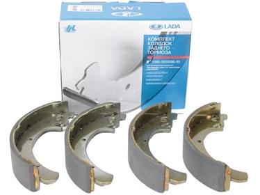 Комплект задних тормозных колодок барабанного тормоза (комплект (4 шт) на заднюю ось, в фирменной упаковке «АВТОВАЗ») (для ВАЗ-1117…1119 «Kalina»,-2108…21099 «Samara»,-2110…2112,-2113…2115 «Samara 2»,-2170…2172 «Priora»,-2190,-2191 «Granta»,-2192,-2194 «» (без системы АБС))
