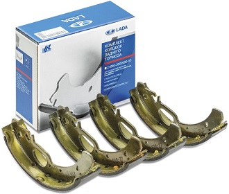 Комплект задних тормозных колодок барабанного тормоза (комплект (4 шт) на заднюю ось, в фирменной упаковке «АВТОВАЗ») (для ВАЗ-1117…1119 «Kalina»,-2110…2112,-2113…2115 «Samara 2»,-2170…2172 «Priora»,-2190,-2191 «Granta»,-2192,-2194 «» (с системой АБС))
