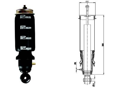 Пневмогидроэлемент (пневмоподушка передняя/задняя L=240/332 мм D=85 мм dпроушины=14 мм тип крепления: «проушина-штырь») подрессоривания кабины (для МАЗ-5440-6430; Scania)