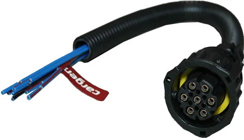 Разъем соединительный (колодка соединительная, штекер) 7-ми контактный байонетный с прямым адаптером гнездовой (розетка, «мама» (Female)) с 7-ю проводами (сечение провода S=0,75 ) в гофре применяется для герметичного разъемного соединения при подключении фар, блок-фар и фонарей задних (для МАЗ, КамАЗ, ГАЗ, Урал, грузовых иномарок)